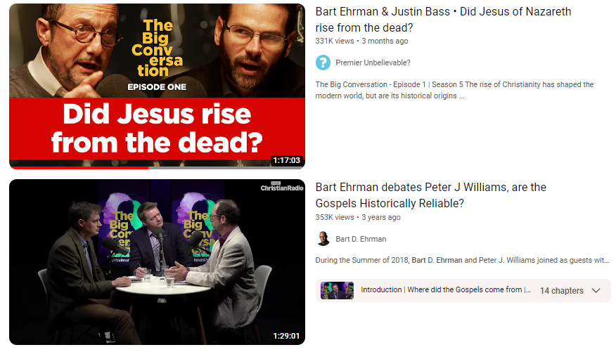 제가 자료 준비용으로 봤던 토론 영상 2개- Bart Ehrman vs Jame White Pt1,2
