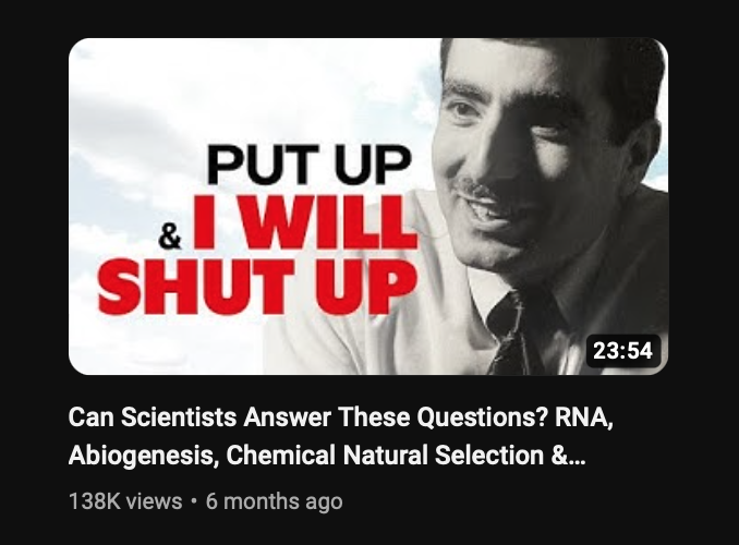 미국 라이스대학의 저명한 화학자 제임스 투어 (James Tour) 박사/교수는 공공연하게 현재 학계에서 이뤄지는 '생명의 기원에 대한 연구'에 대한 문제를 비판합니다. 그리고 전세계 학자들을 대상으로 도전을 받습니다. 무생물이 유생물로 변했다고 하는 abiogensis, 화학진화를 입증하면 자신이 생명의 기원 연구에 대해 올린 비평, 모든 유튜브 콘텐츠를 삭제하겠다고.