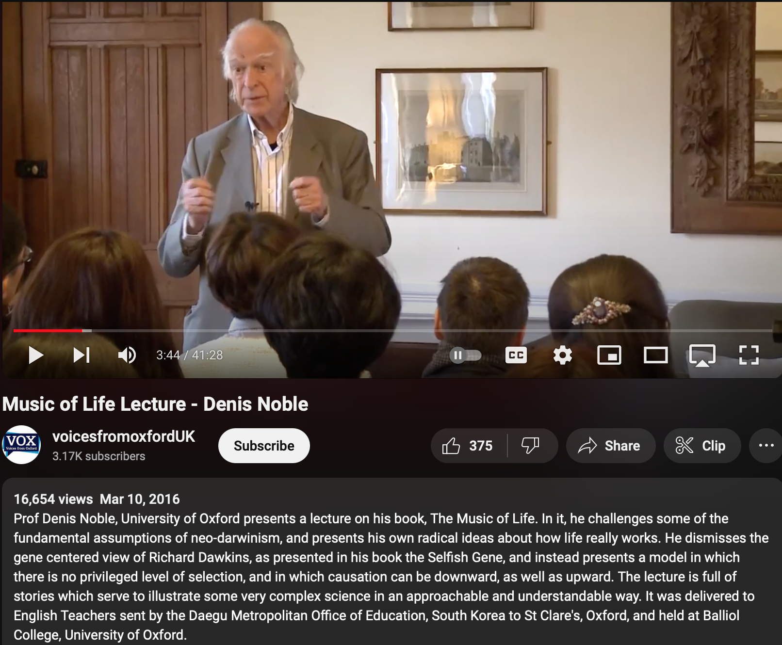 리처드 도킨스는 반종교적 입장으로 무신론을 대변하여 유신론자들과 토론을 많이 했습니다. 그 책의 주제도 과학이 메인이라기보단 반종교계몽운동이 위주라는 비평도 많이 받았습니다. 그런 리처드 도킨스와 과학으로 토론 옥스포드 대학의 학자가 있습니다. 시스템 생물학으로 '이기적인 유전자'를 비평한 과학자. 생물학자, 생리학자, (리처드 도킨스처럼) 무신론자인 데니스 노블 (Denis Noble)교수죠.