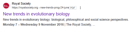 - webinar “Evolution, a theory in crisis”-
