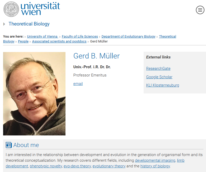 이론생물학 박사, Gerd B. Mueller -