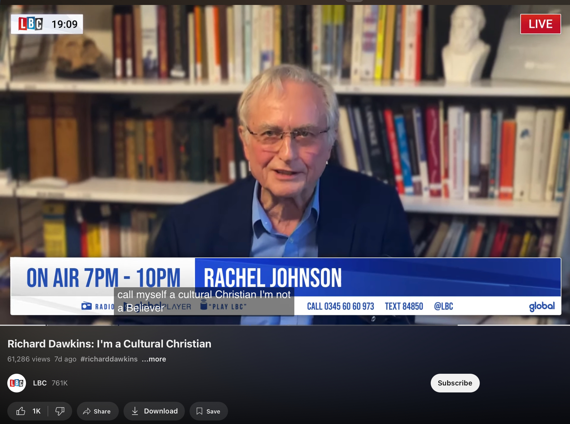 최근에 리처드 도킨스(Richard Dawkins)는 LBC Radio 인터뷰에서 현재 영국에서 일어나고 있는 이슬람 확장세에 대해 질문을 받고 이렇게 대답했습니다.