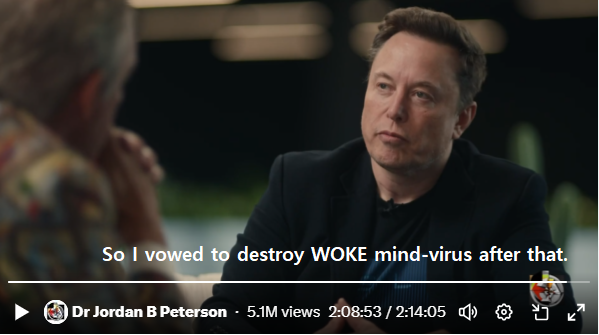 그 인터뷰 영상에서 일론 머스크는 현재 미국을 휩쓸고 자신의 아들도 앗아간 ’워크 마인드 바이러스(woke mind-virus’를 파괴하겠다고 맹새했다고 이야기 합니다.