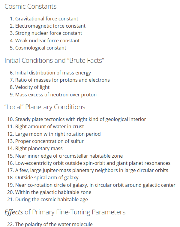지구와 태양의 거리, 공전의 궤적, 속도, 중력 등 물리학적으로 확인된 많은 수학적 요소(물리상수 physical contant) 들을 보면 아주 조금만 이 조건이 달라져도 이 우주는 시작할 수 없었고, 지구는 인류가 살아가기 적합하지 않은 곳이었을 겁니다.