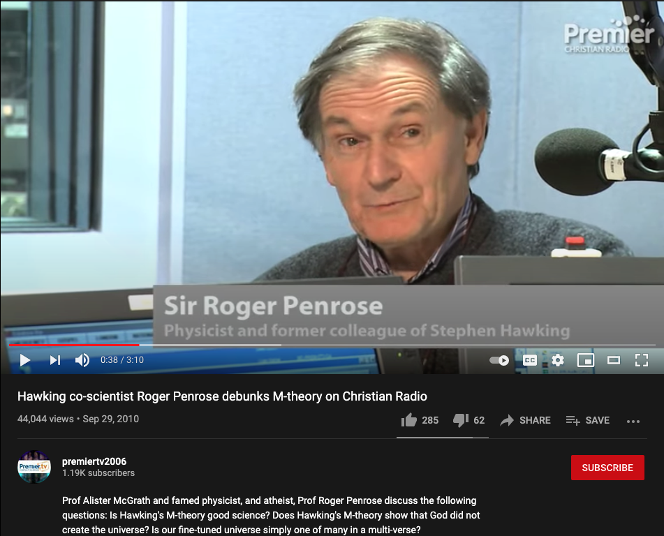 스티븐 호킹과 공동 저술(링크)을 하기도 하고 2020년 블랙홀 연구에 대한 공로로 노벨 물리학상을 수상한 로저 펜로즈 경 (Sir Roger Penrose)은 호킹의 M-Theory에 대해 다음과 같이 평가 합니다.