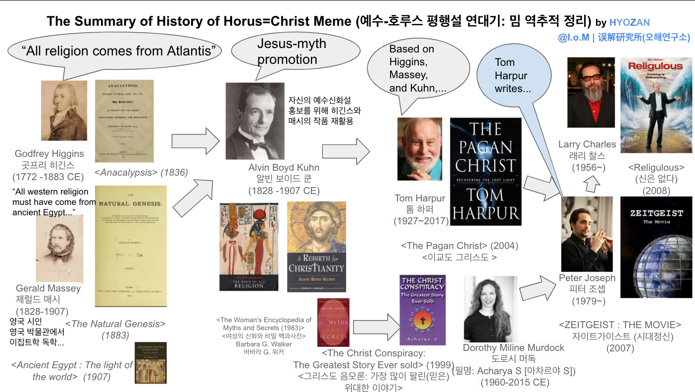 이 호루스-예수의 평행설의 역사를 정리하면 아래와 같습니다.