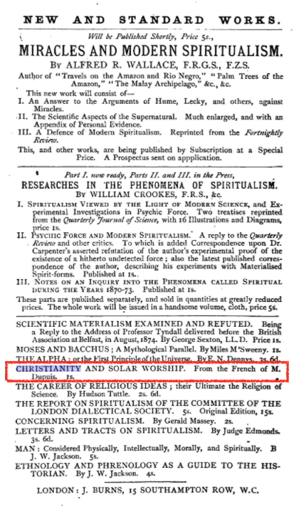 위 두 프랑스 저자들은 예수가 역사적 인물이 아니라고 믿었고, 기독교(그리스도교)가 동양신화가 융합된 종교라고 믿었습니다. 프랑스 혁명 세력의 일원이었던 두 사람의 업적은 프랑스 밖에는 크게 영향력을 미치지 못합니다.