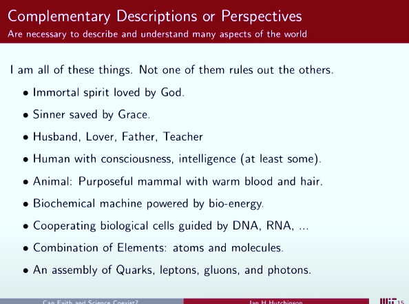 사실 제가 오늘 저녁 여러분에게 아주 간단히 보여 드리려고 한 것은 단순한 공존보다는 과학과 기독교 사이에 훨씬 더 건설적인 관계가 있다는 것입니다.