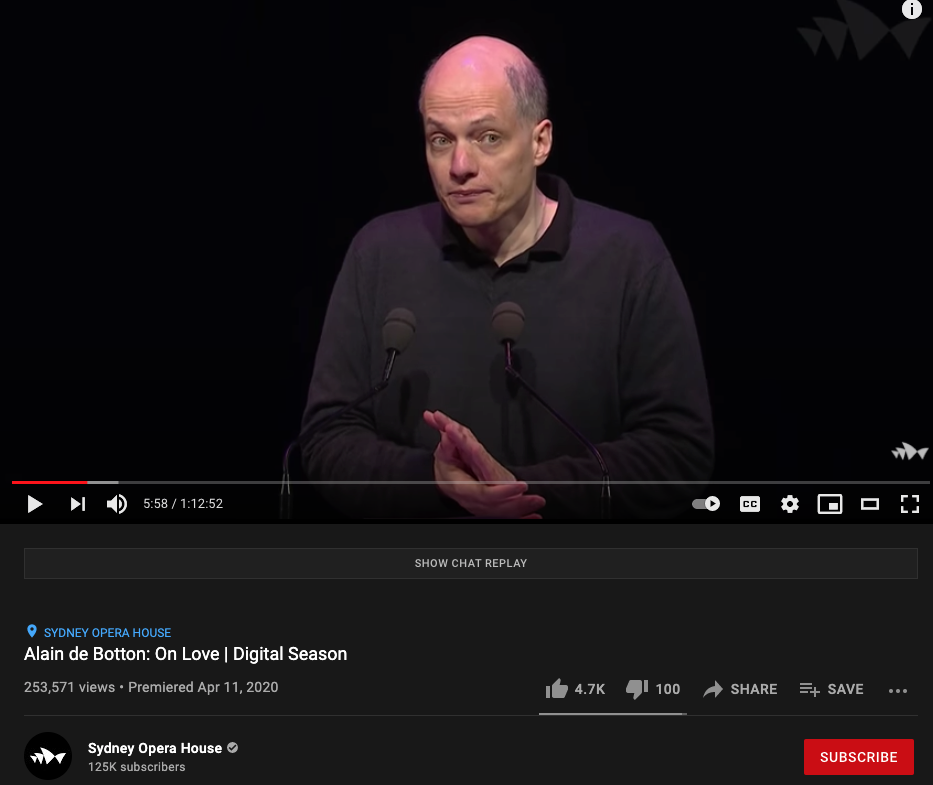 제게는 서른이 넘어 독서를 다시 즐기기 되기 전에 좋아했던 작가로는 알랭 드 보통이 있는데, 2016년 출간한 책 'The Course of Love' 과 관련된 강연 'Alain de Botton: On Love | Digital Season' 을 접하게 됩니다.