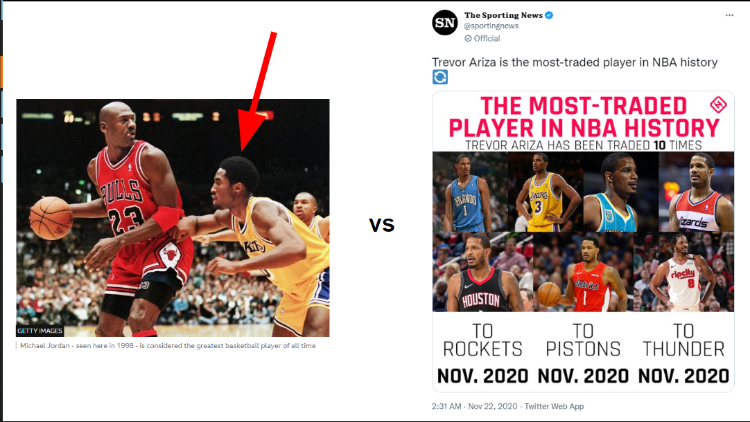 ※원래 마이클 조던을 생각했는데, 생각해보니 조던은 나중에 은퇴 후, 자신이 구단주가 된 워싱턴 위저드에서 뛰었던 이력이 있었네요;;