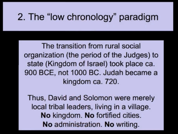 아니면 미니멀리스트의 주장처럼 기원전 8-9세기인지? 아니면 저연대기(Low Chronology) 패러다임의 주장처럼 300여년 후인 8세기 말인지?