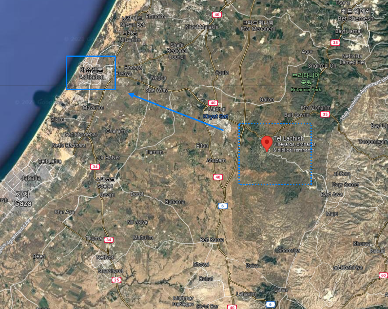 애쉬클론/아슈켈론(Ashkelon)*을 마주하는 쪽이죠. (아래 추가 자료 삽입)
