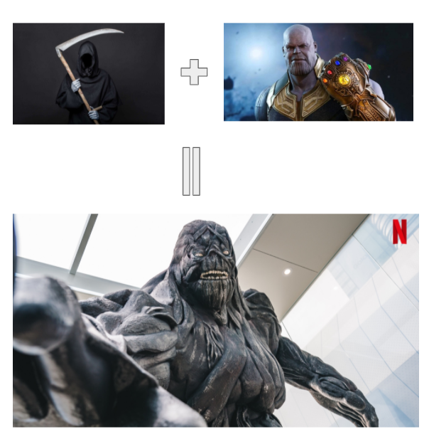 <지옥>의 세계관에서는 “신의 사자”로 해석되는 괴물들은 전혀 기독교적이지 않다. 그들은 주로 호리호리한 전통적 저승사자와 영미권의 reaper와 대조되는 어벤져스의 타노스 급의 우람함을 지닌 혼종 존재이다. 작품 내에서 “심판으로서의 죽음”을 표현 하기 위한 심볼이었을지 모르겠다.