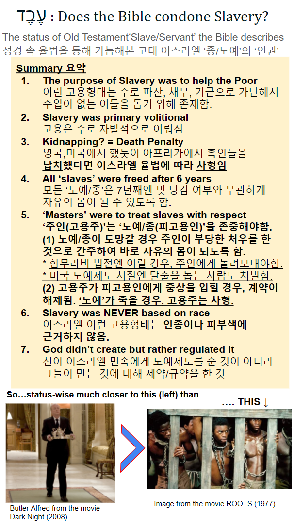 (2) 성경에 나온 율법에 관한 구절들로 요약해본 '노예'(혹은 '종') 의 인권