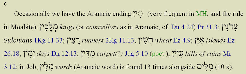 [번역] 흥미로운 몇 구절에서 엘로힘םיהלא 또는 םיהלאה가 복수 술어의 주어로 드물게 문법적으로 일치하는 경우가 나타납니다. 외국 '신'을 언급하거나 외국인의 입에서 표현될 경우의 문법적 일치가 되는 경우를 제외하고 몇 가지는 엘로힘 םיהלא(※좌→우)또는 '관사+엘로힘' םיהלאה(※좌→우)이 의미적으로 복수형으로 이해되도록 허용합니다. 그러므로 이 구절들은 이스라엘의 신성한 회의(Israelite divine council/열왕기상 22:19 '하늘의 모든 군대')의 존재를 암시할 수 있습니다. 그러나 증거가 이러한 결론을 강제하지는 않으므로 의미론적 복수는 유일한 선택이 아니라 일관된 선택으로만 간주되어야 합니다. 번역가는 일관성을 유지하면서도 궁극적으로 의도한 청중에게 가장 명확하게 전달되는 것이 무엇인지를 바탕으로 결정해야 합니다.