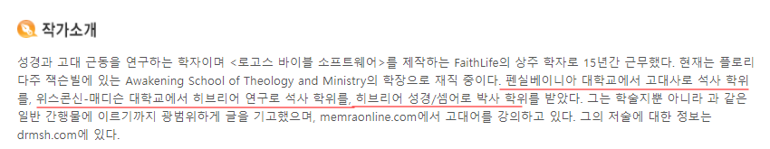 - 셈어와 히브리 성경 박사 (윈스콘슨-매디슨 대학)