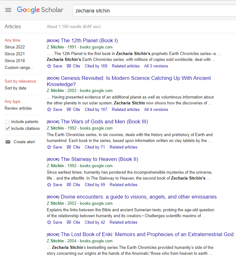[번역] 제카리아 시친은 과학자, 역사학자, 고고학자들에게 그의 이론이 '유사과학(PseudoScience)이라고 일축하며 바보같다고 불려왔고 그의 근거들을(고대 텍스트에 대한 번역과 물리학에 대한 이해에 대해) 비평해왔다.