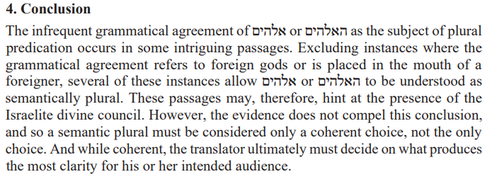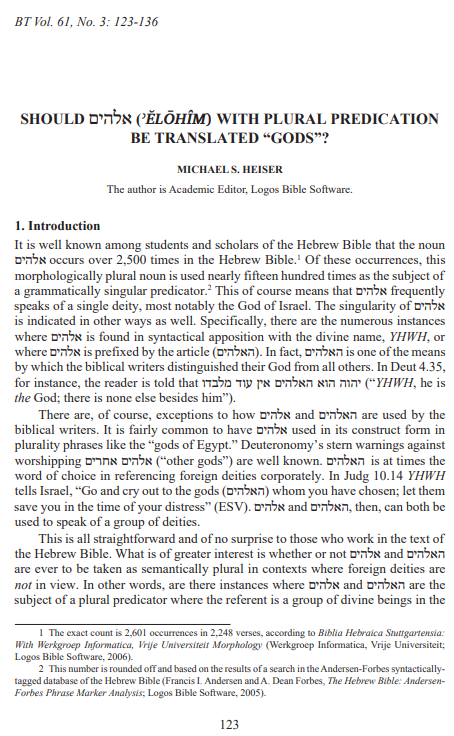 제목: "복수형 술어동사를 지닌 '엘로힘'은 '신들GODS'로 번역되어야 하는가?"