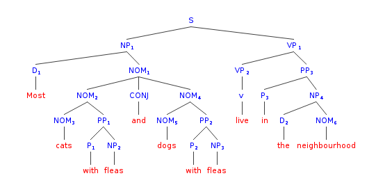 이상하게 들리시나요? 생각해보세요. 이 글을 읽으시는 분께선 한국어(원어에선 영어)를 알겠죠. 지금 읽고 말할 수 있을 겁니다. 하지만 만약 이 문단의 각 문장에 대해 (언어학적) 다이아그램(아래참고)을 그리실 수 있을까요? 모든 동사의 시제를 설명할 수 있나요? 각 전치사구가 변형시키는 동사에 대해 문법적 관계를 설명할 수 있을까요? 모든 주어와 동사 관계를 설명할 수 있나요? 무슨 말씀을 드리고 싶은 지 알 거라고 생각합니다. 정확한 번역을 위한 문법적 분석은 그 언어를 사용할 줄 아는 것 (말할 수 있는 것)과는 다르다는 겁니다. 만약에 그렇지 않다면 중학교, 고등학교, 대학교 영어 수업에 문법 시간이 없었을 겁니다.