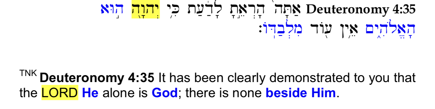 "이것을 네게 나타내심은 여호와는 하나님이시요 그 외에는 다른 신이 없음을 네게 알게 하려 하심이니라" (개역개정)