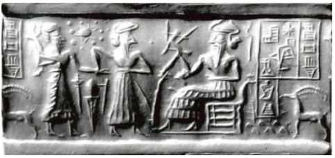 '물.아핀' ("The Plough Star" , MUL.APIN 𒀯𒀳) 로 알려진 아래와 같은 설형문자/쐐기문자 (Cuneiform) 기록을 통해 알 수 있습니다.