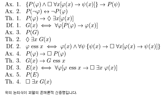 그는 신이 존재한다는 건 수학적으로 증명된 바 있다며 내게 괴델이란 이름을 알려주었다. Gödel's ontological proof. (한글 위키피디아 링크/ 관련 기사) 그리고 그렇기 때문에 자기도 신을 부정하지 않는다고. 아주 의외의 순간이었다.