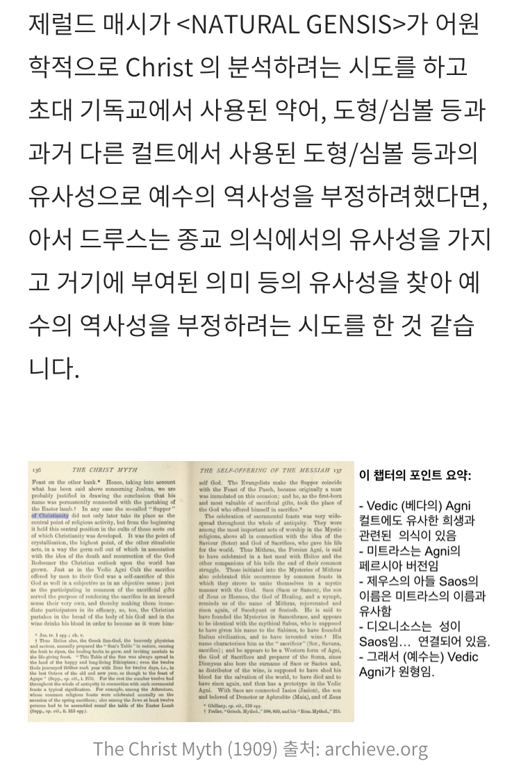 이 주장은 본질적으로는 1900년대 철학교수 아서 드루스(C.H Arthur Drews)가 했던 주장과 유사합니다.